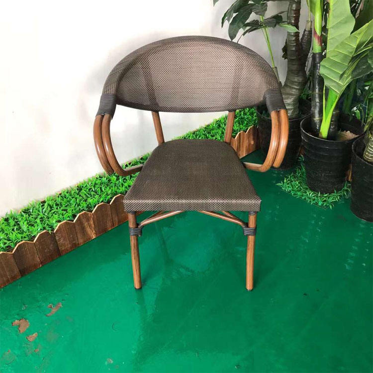 Silla de mimbre de bambú para terraza, conjunto de restaurante de ratán con brazos para jardín, patio, comedor, reposabrazos, cafetería, tienda de café