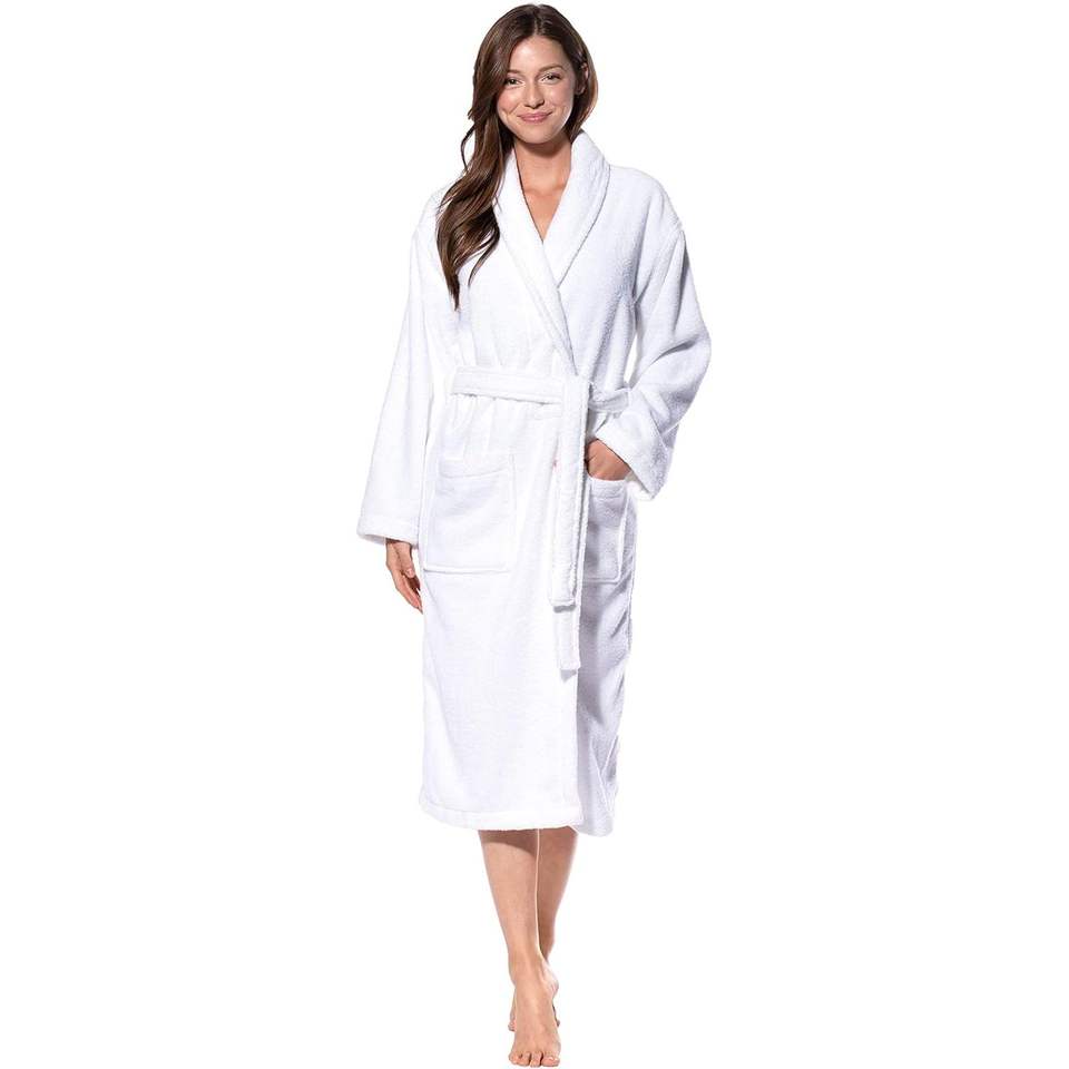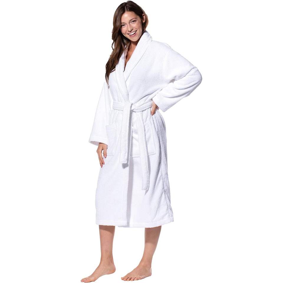 Bata de tela de rizo para mujer, 100% algodón turco, estilo kimono, color blanco, talla XX-Large, suave bata de baño.