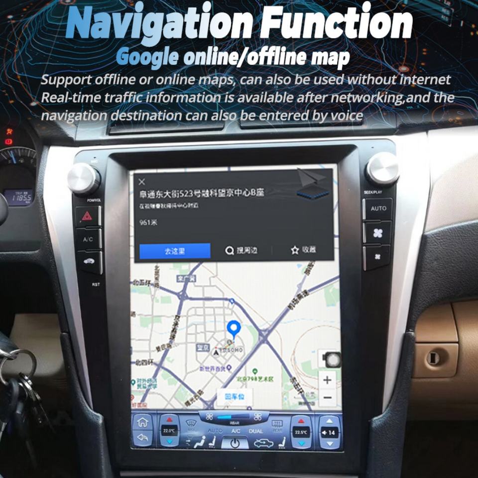 Reproductor de Radio Android 13 para Automóvil Tesla Style de 12.1'' para Toyota Camry 2012-2016, Pantalla Vertical Multimedia con GPS, Video, Carplay Inalámbrico