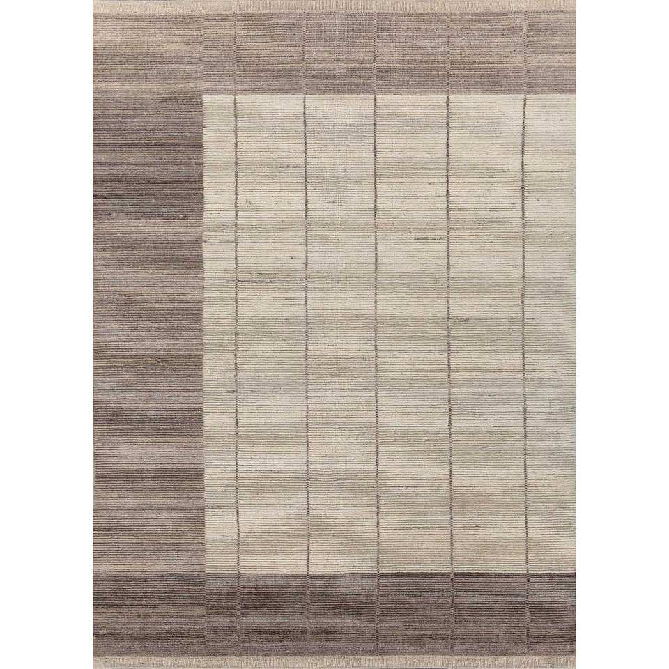 Alfombra de Lana a Rayas Color Marfil Tesoro, Rectangular Grande de 9x12, Diseño Aubusson Tejido a Mano para Entrada, Pasillo, Material de Poliéster