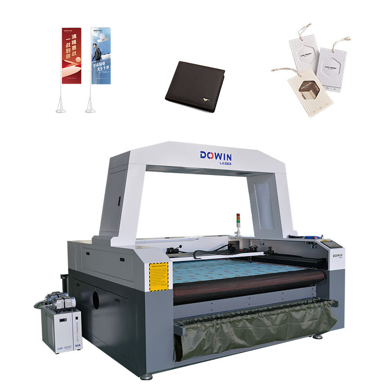 Máquina cortadora láser de tela en rollo textil, máquina cortadora láser Co2 de posición de cámara Ccd para tienda de banderas textiles