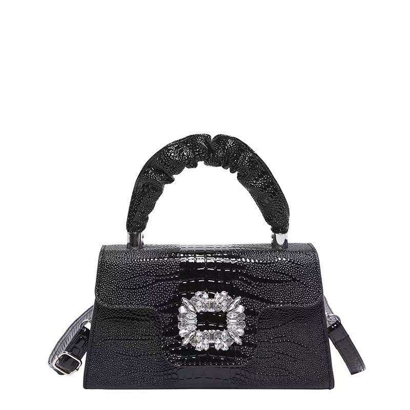 Mini bolso de cuero texturizado con decoración de diamantes Asa superior brillante