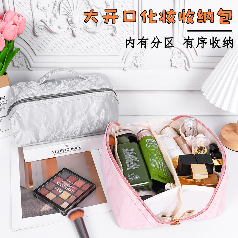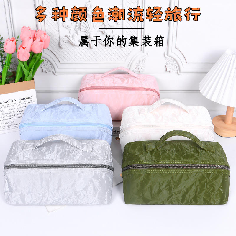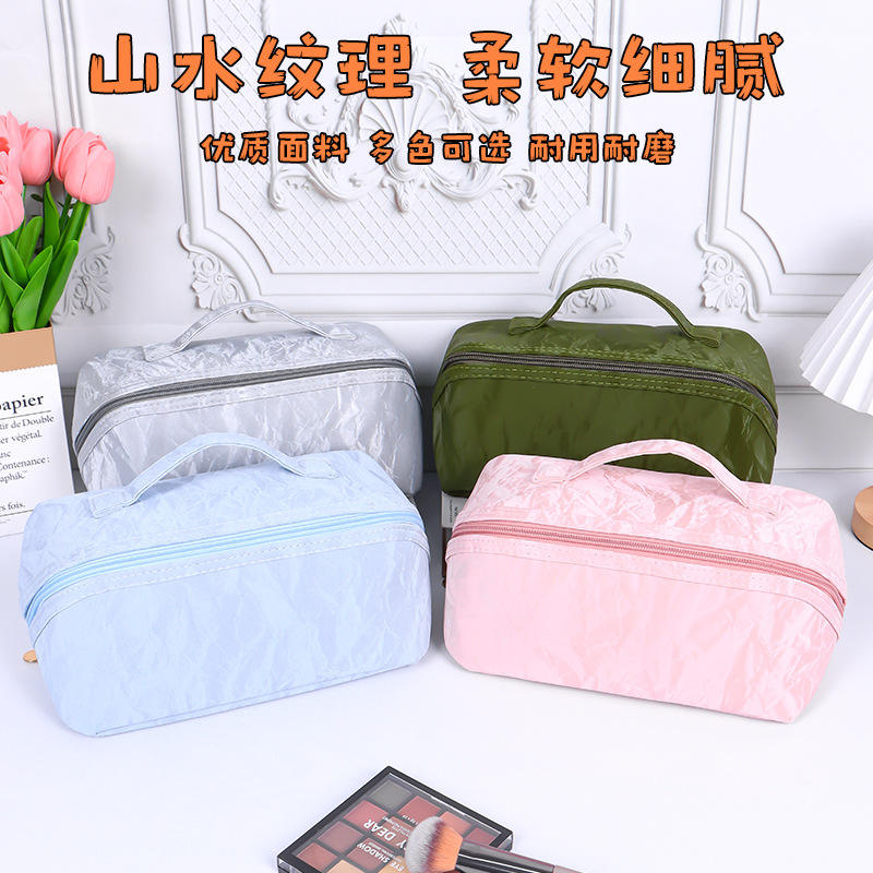 Bolsa de Maquillaje de PU Texturizado con Cierre, Asa Suave, Estuche Cosmético Portátil para Mujer, Patrón Geométrico, Primavera 2025