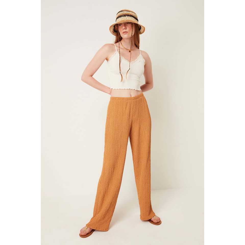 Pantalones Casuales de Corte Regular con Textura, 100% Poliéster
