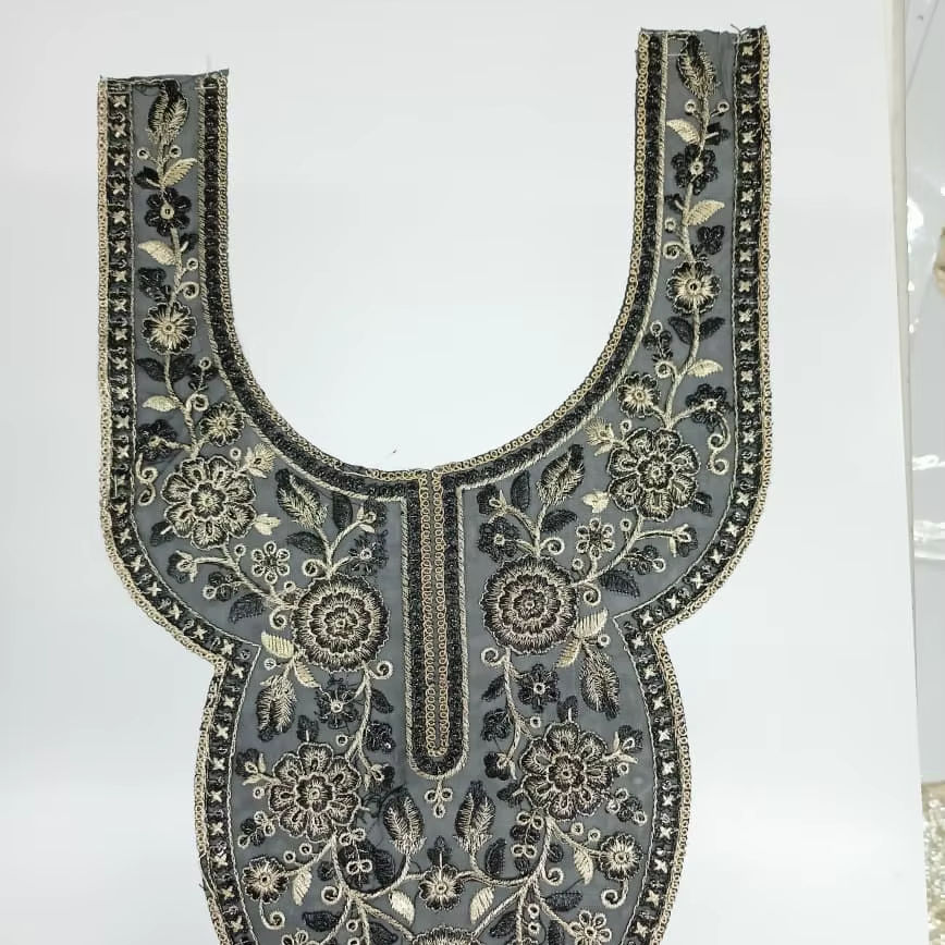 Parche texturizado para cuello con base de red y bordado artístico con trabajo de lentejuelas para blusa étnica india Kurti