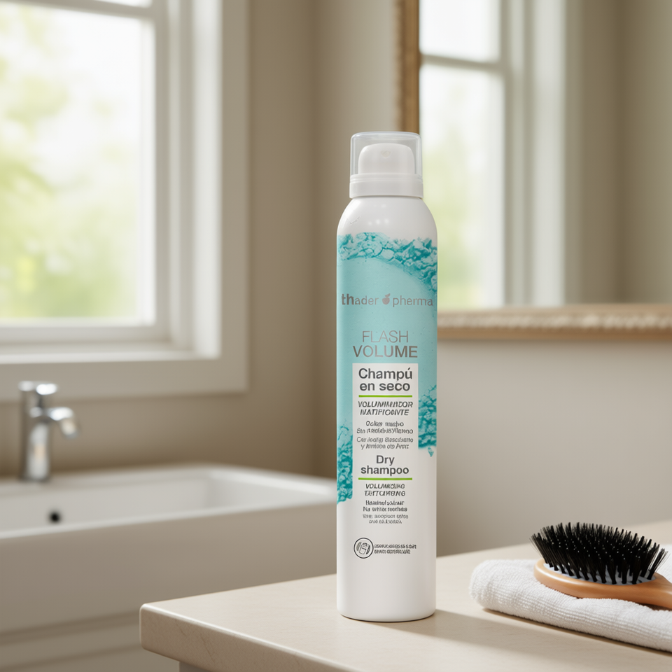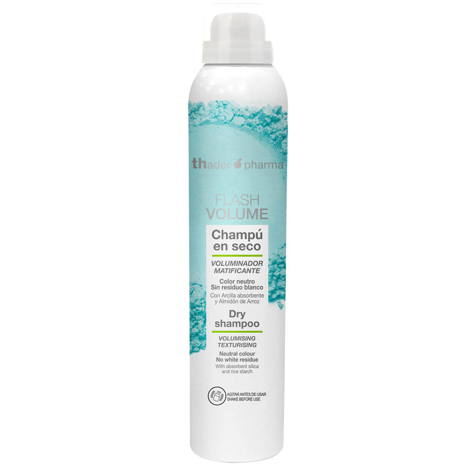 Champú Seco Voluminizador Translúcido Thaderpharma Flash Volume, Mineral, Texturizador, Acabado Mate, Color Neutro, Sin Residuos Blancos