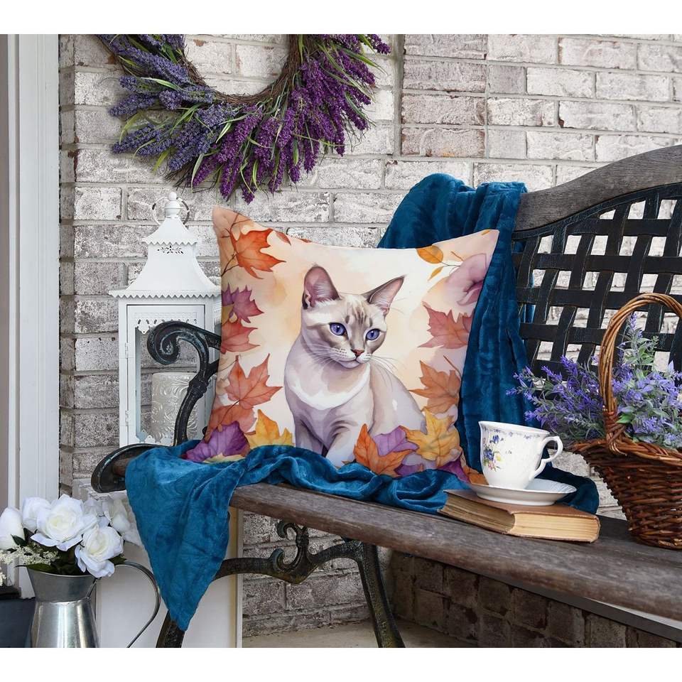 Cojín decorativo de hojas de otoño de gato Lila tailandés 18H x 18W lavable a máquina para interior y exterior para sofá cama y decoración de Patio