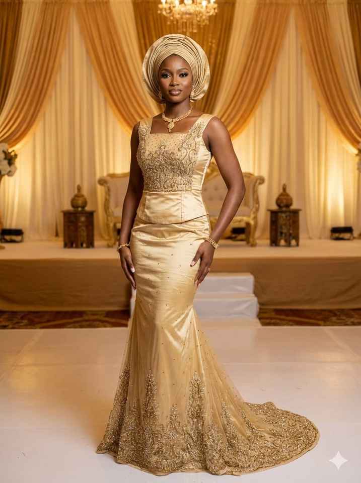 Colección Emperatriz, Traje Tradicional Nigeriano Ecológico para Niñas, Diseño Floral Abstracto George Marrón, Hecho a Mano, Especial para Bodas