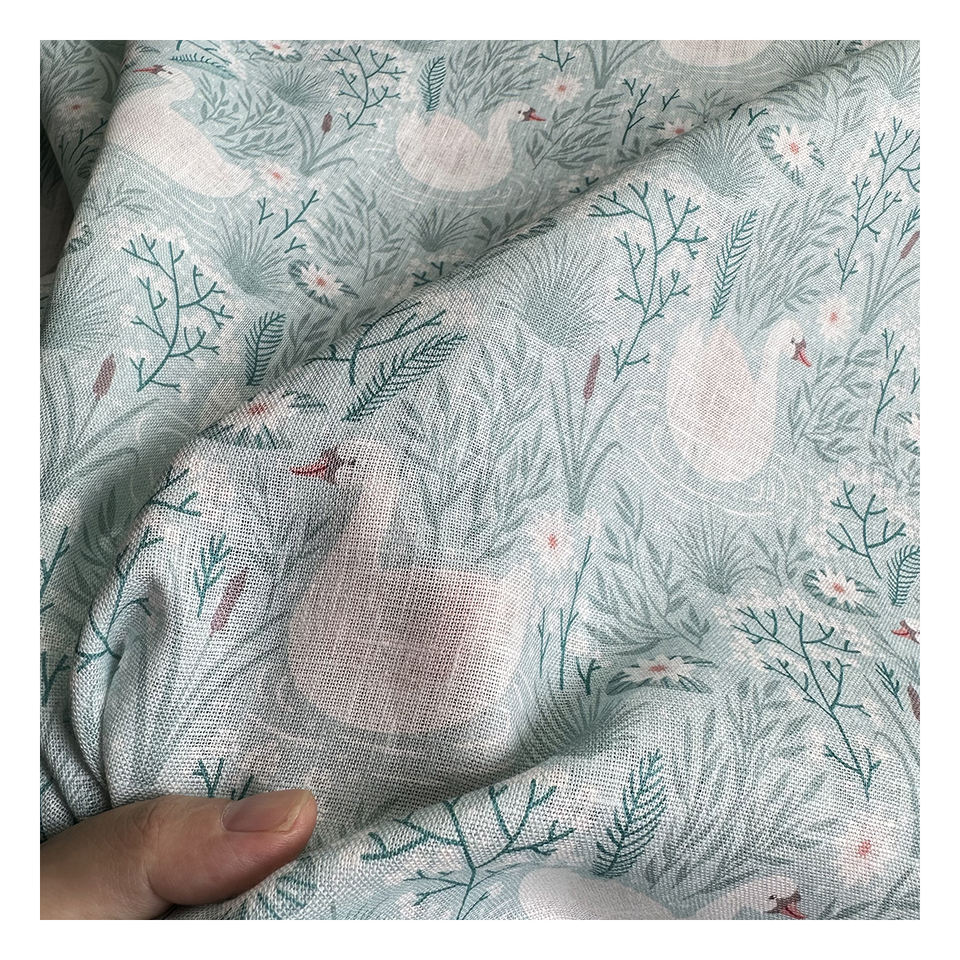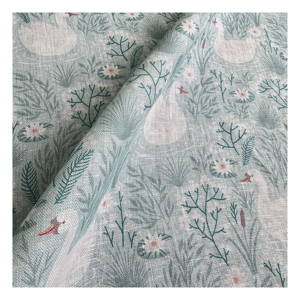 Tela de Lino Italiano con Diseño Clásico de Cisne, Impresión Digital 100% Lino, Venta al por Mayor para Confección, Directo de Fábrica