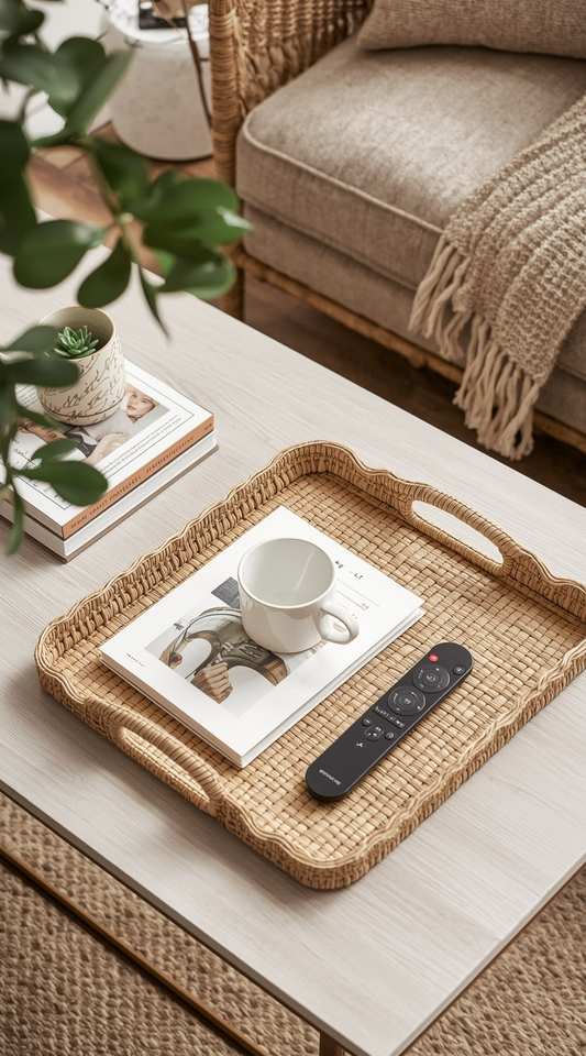 Bandeja Redonda de Ratán Natural de la Colección Hecha a Mano
