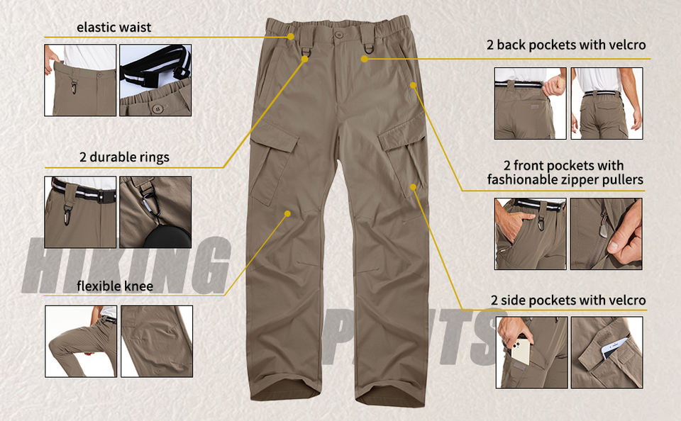 El último diseño produce pantalones de bolsillo multifuncionales antiarañazos impermeables pantalones de senderismo al aire libre personalizados