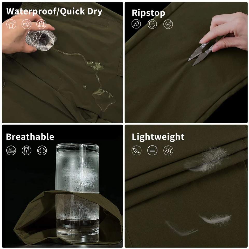 Antiarrugas, Secado rápido, Impermeable, Transpirable, Respetuoso del medio ambiente, Antiestático, A prueba de viento