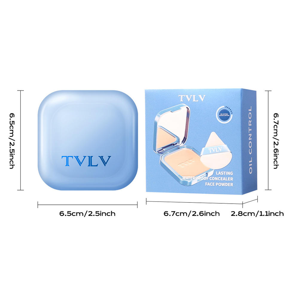 Polvo Compacto Corrector Impermeable de Larga Duración, Viene con 6 Colores de Cosméticos Faciales para Mujer, Polvo Facial Compacto