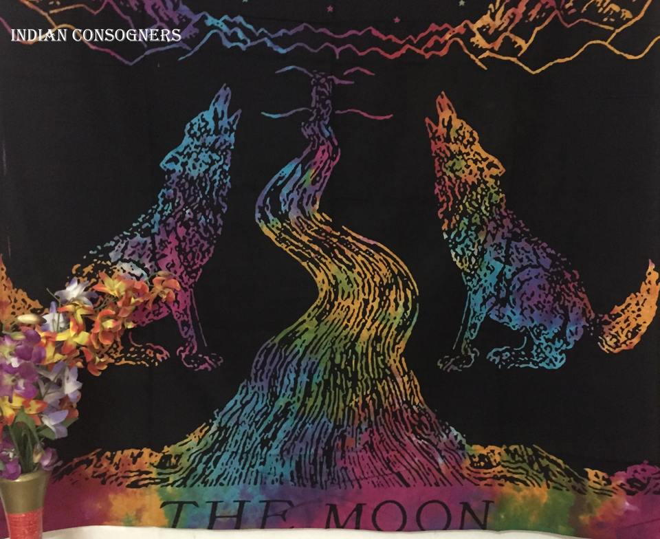 Tapiz de Algodón con Estampado de Lobo Lunar, Cubrecama de Tamaño Individual, Diseño de Mandala con Estampado de Animales Lunares, Varios Colores, Tapiz de Pared de Proveedores Indios