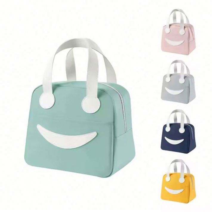 Nueva Lonchera Térmica Grande de Poliéster con Diseño de Sonrisa, Bolsa Térmica Aislante para Almuerzo