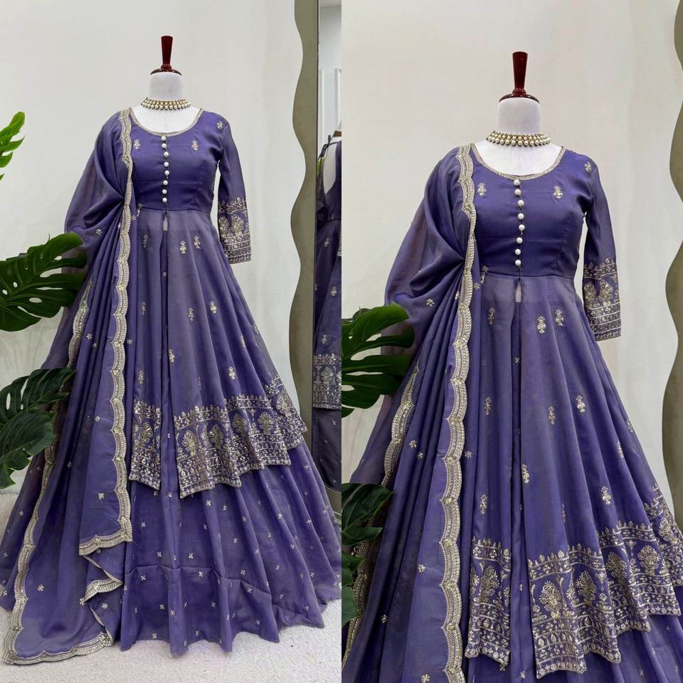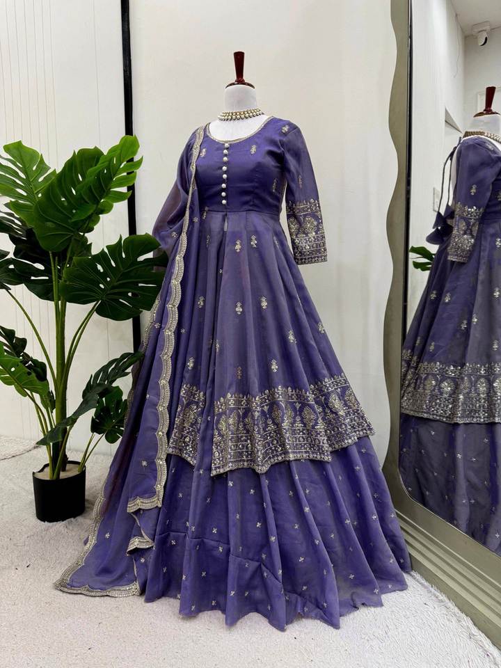 LEHENGA TRABAJO:-Thred con Sequnce trabajo-Tamaño:-Hasta 42(Semi-Stitched) Fla :-4,5 M