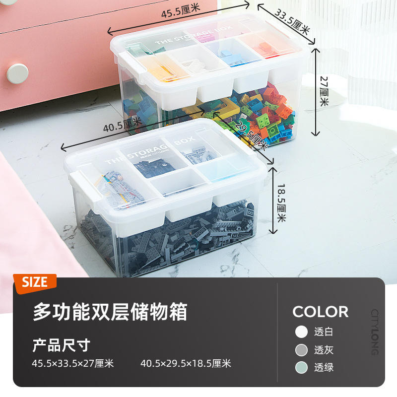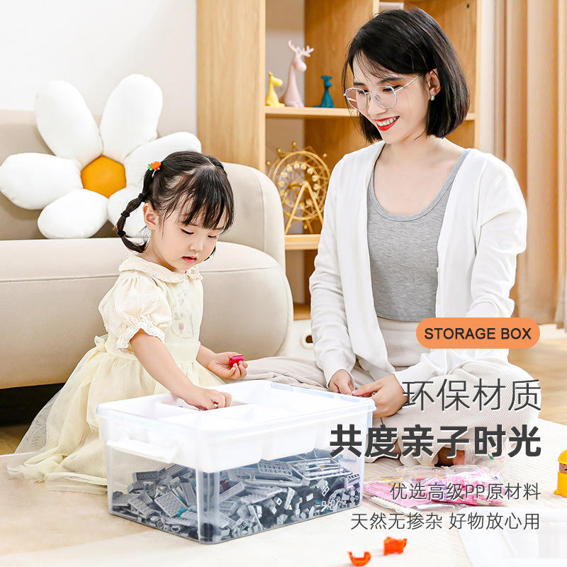 Caja de almacenamiento con compartimentos transparentes para niños, organizador de bloques de juguete, gran capacidad, tipo rectangular vertical