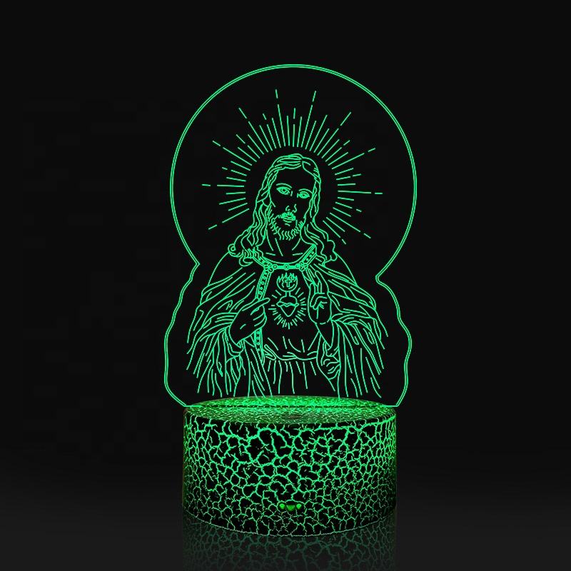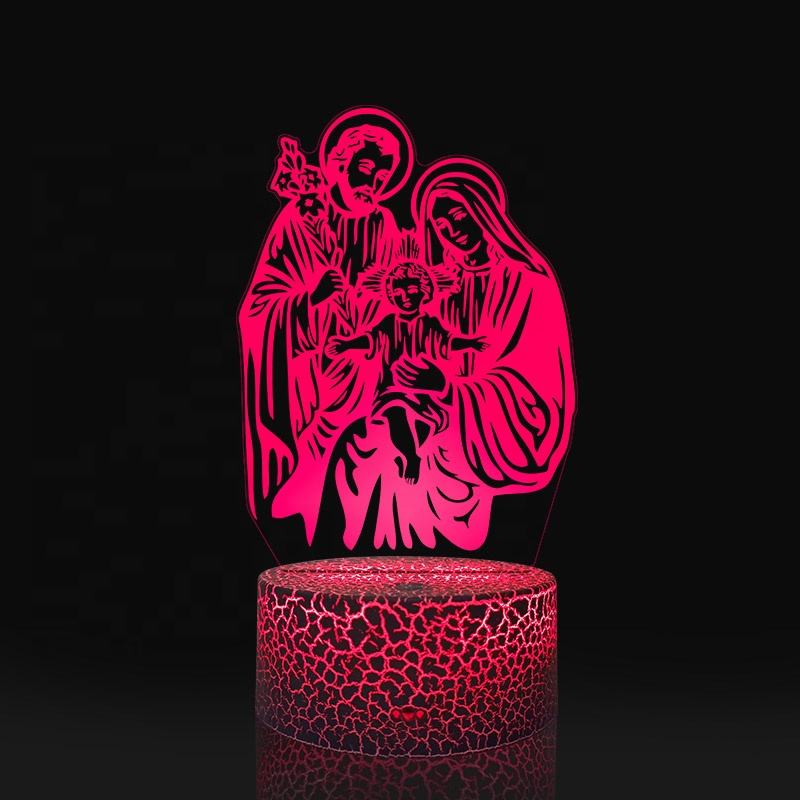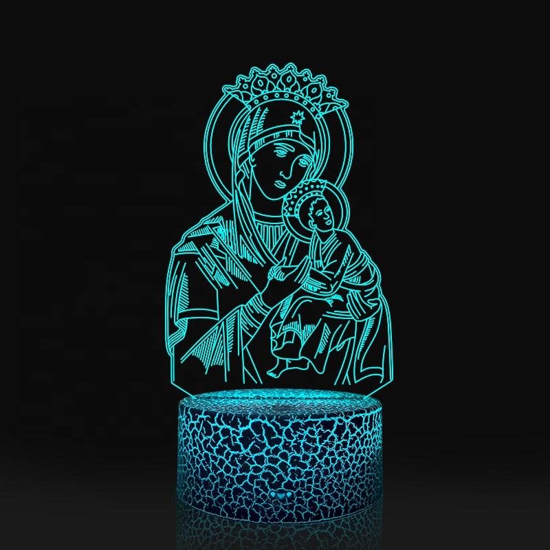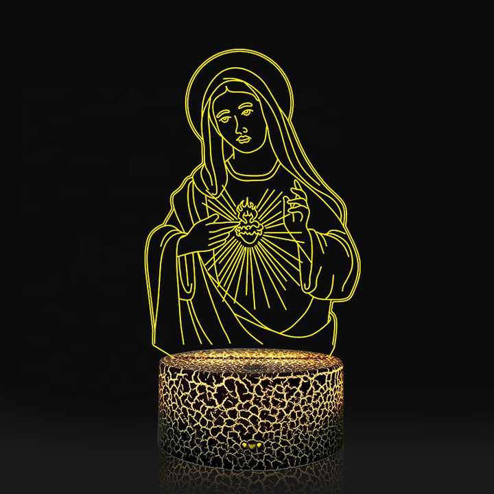 Lámpara de Noche Infantil con Sensor Táctil, Ilusión 3D de la Virgen María con Degradado de 7 Colores, Decoración para Dormitorio, Regalos de Buena Suerte