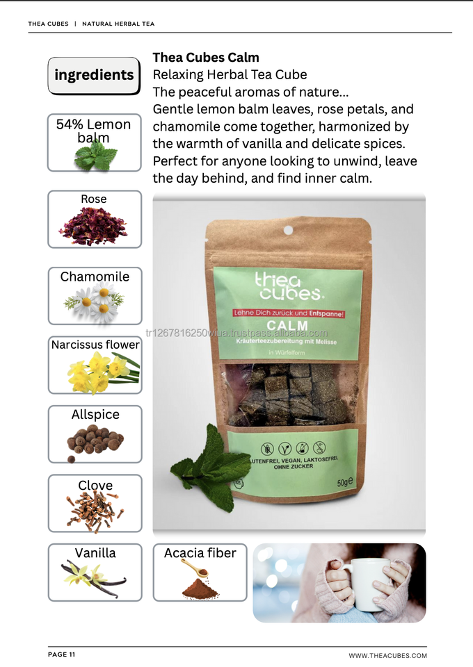 Instrucciones de uso:Un Cubo de té en 250 ml de agua hervida y revuelva