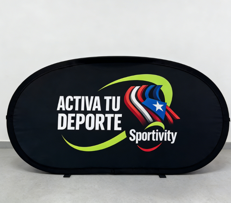 Material:Gráfico: Tejido de poliéster elástico; Marco: Acero metálico con resorte
