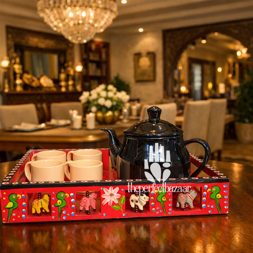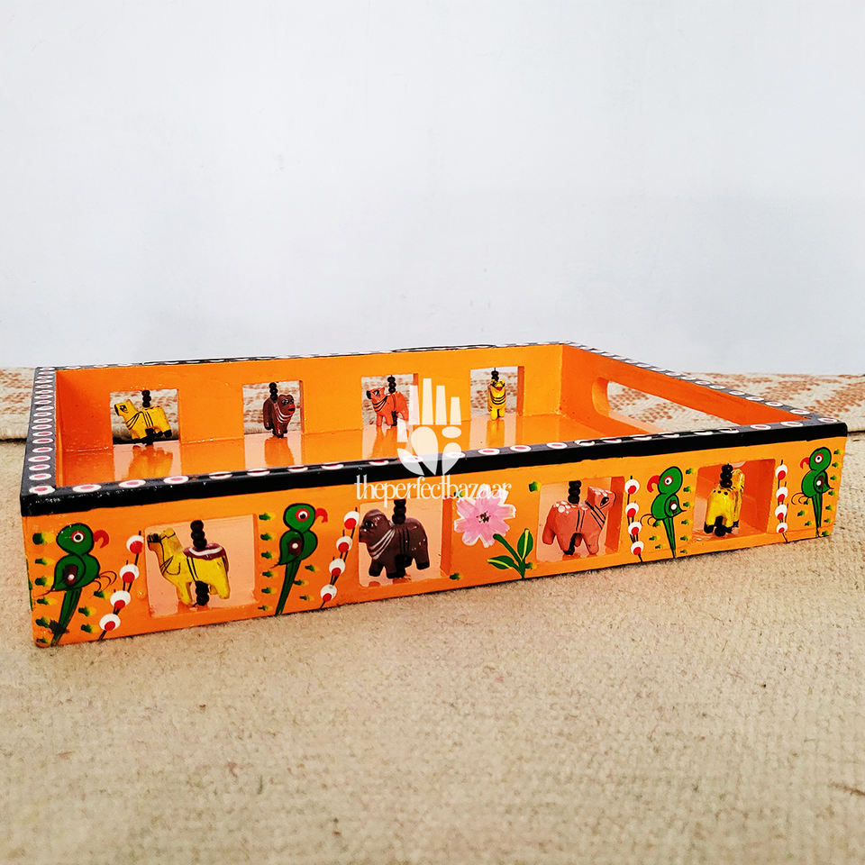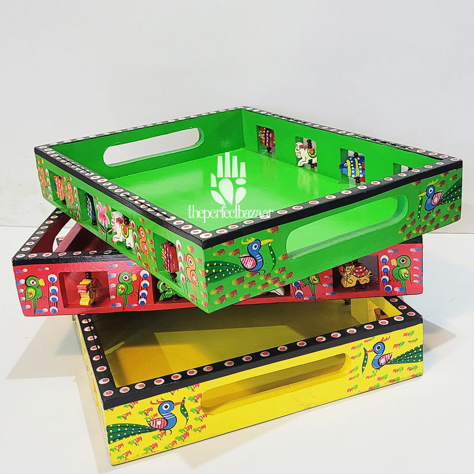 Theperfectbazaar - Bandejas Decorativas Hechas a Mano con Patrón Animal en 3D de MDF para Decoración del Hogar en Diwali - Diseño Contemporáneo