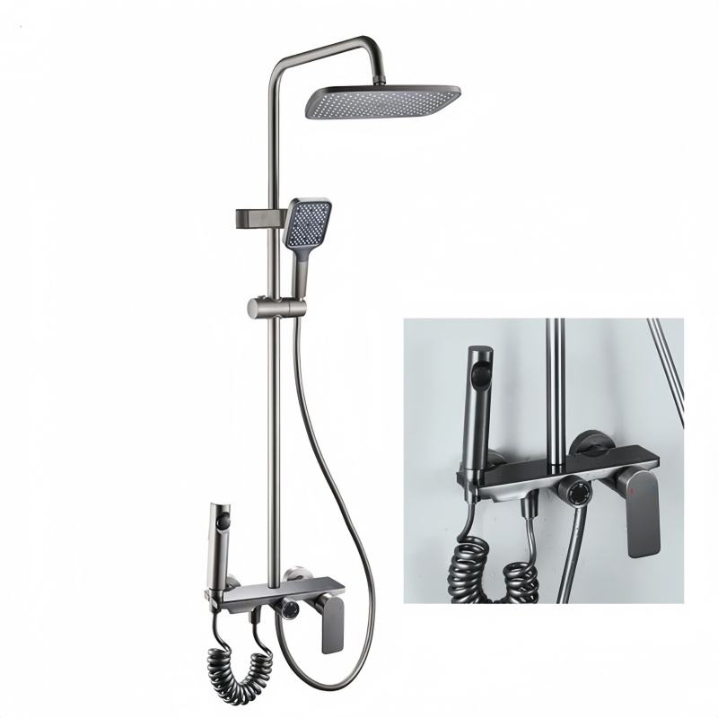 Termostato Cascada Ducha de baño Ducha montada en la pared fría y caliente Juego de ducha de tipo cuadrado de latón