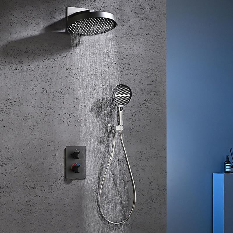 Black concealed dual-function shower set