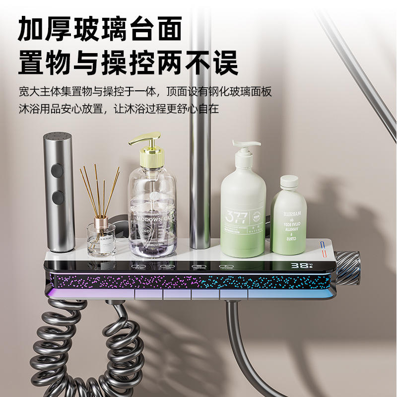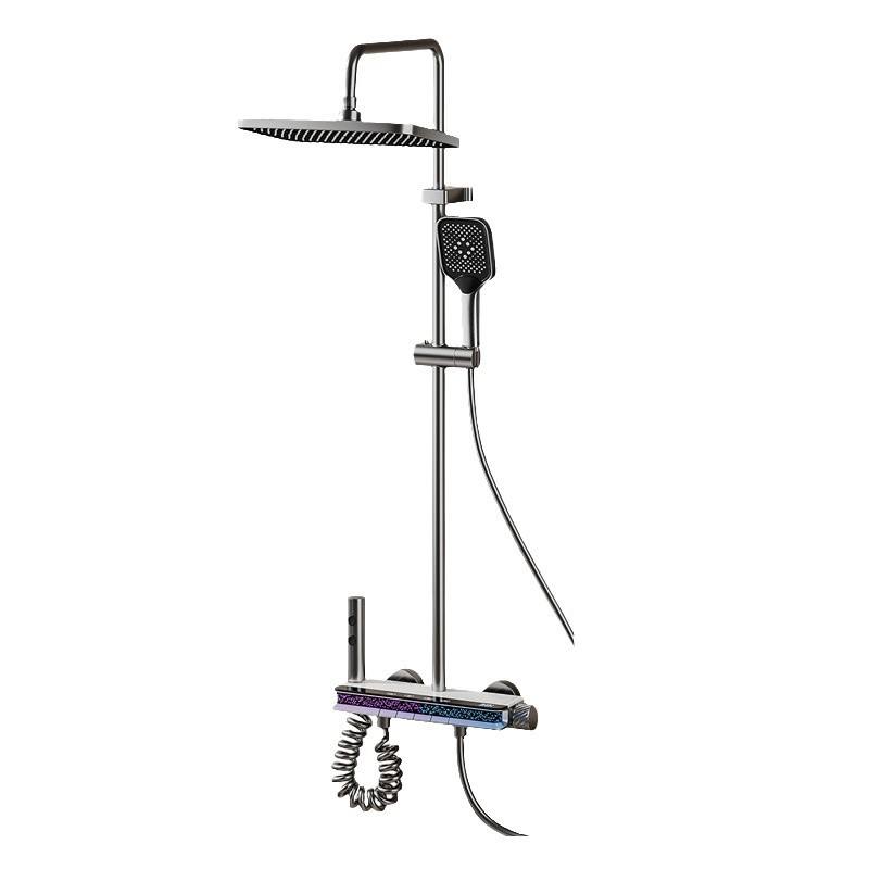 Conjunto de ducha termostático con pantalla digital, acabado cepillado, rectangular, gris metalizado mate, con pulverización, masaje, burbujas y lluvia, de instalación oculta