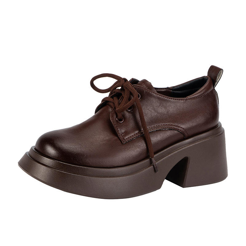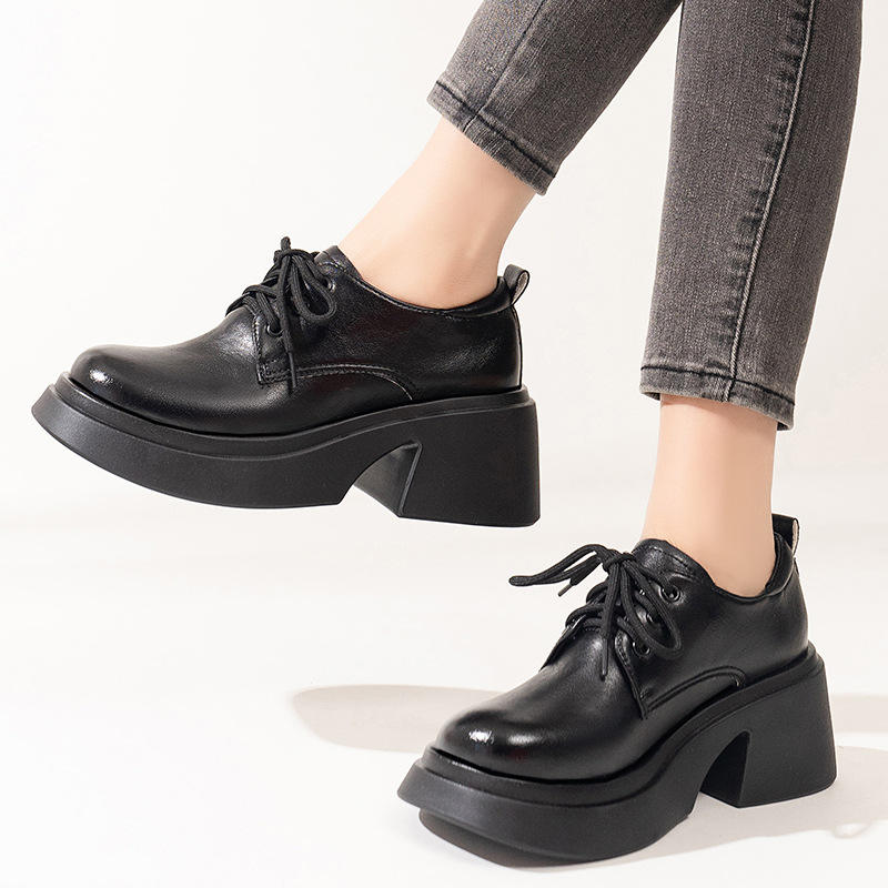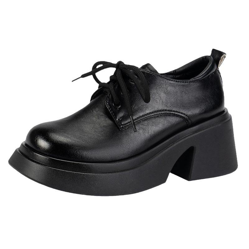 Zapatos de Tacón Grueso Estilo Británico para Mujer, Talla Grande, Punta Redonda, Zapatos de Cuero Casuales de Tacón Alto, Novedad de Primavera