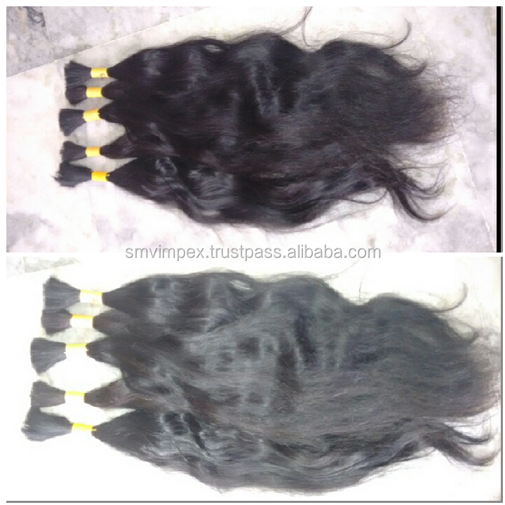 Cabello humano a granel Remy de extremo grueso. Cabello virgen indio a granel natural de la India. Cabello crudo de donante único de la India