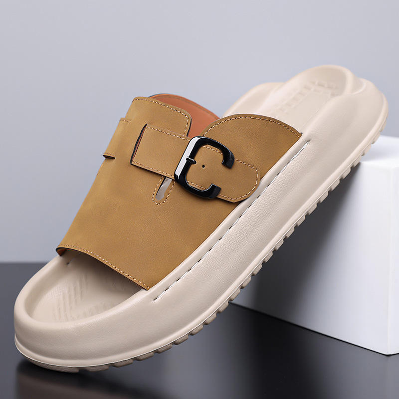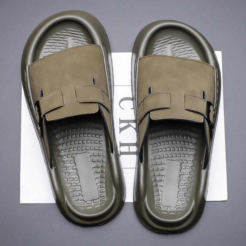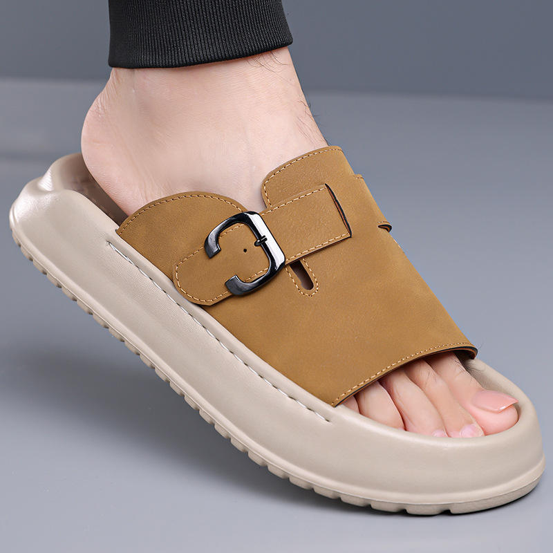 Sandalias de suela gruesa para hombre, zapatos de playa informales de verano, estilo juvenil, sandalias deslizantes con cierre de hebilla