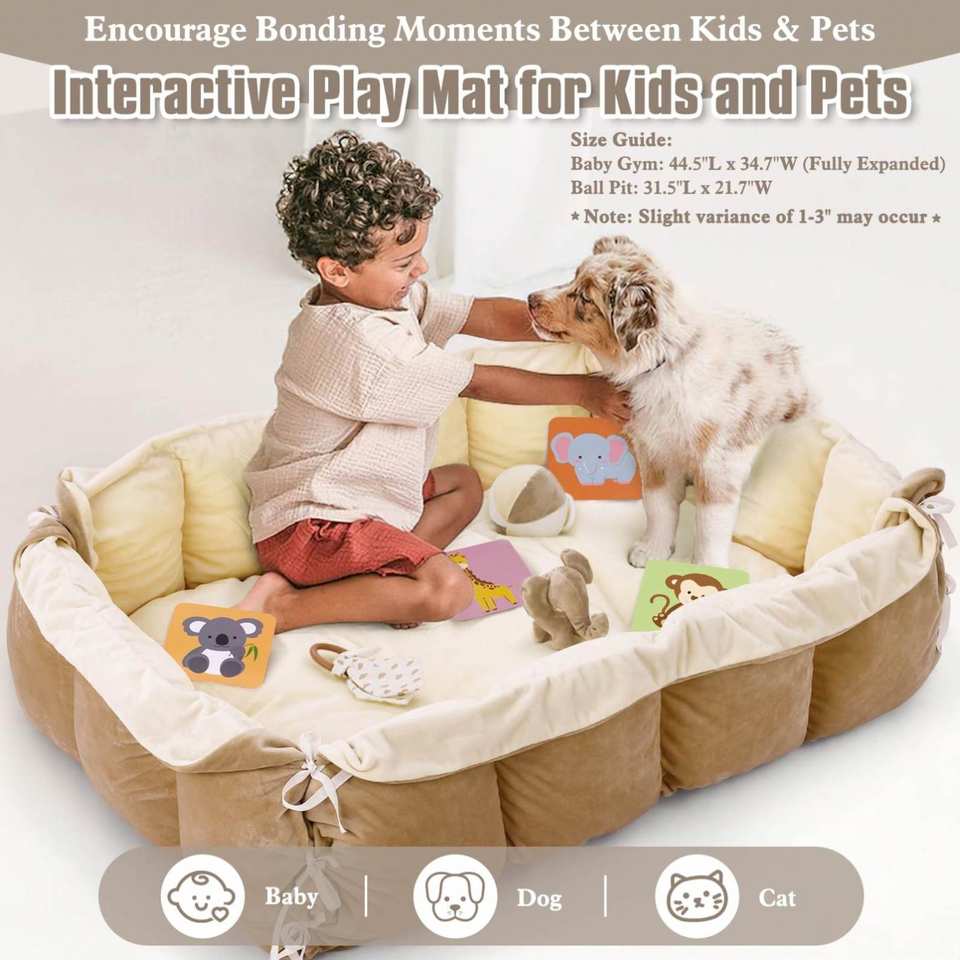 Tapete de Juego Grueso para Bebés con 5 Juguetes Sensoriales Desmontables, Antideslizante y Lavable