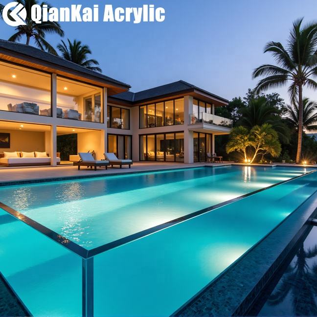 Pared de ventana gruesa sobre el suelo, paneles enterrados de lado completo, hoja de vidrio sin fin, piscina acrílica de fibra de vidrio transparente para exteriores