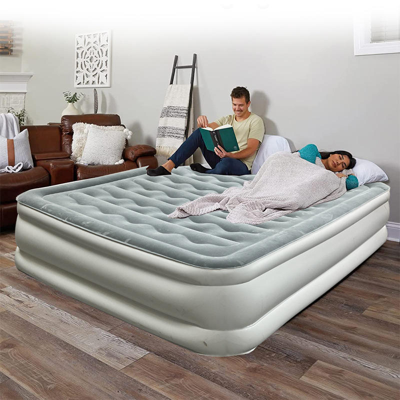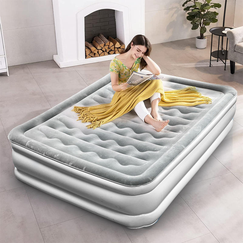 Cama de Aire Inflable Automática Reforzada, Tamaño Grande, para Varias Personas, Uso Doméstico, Resistente al Desgaste, Gris, PVC Ecológico