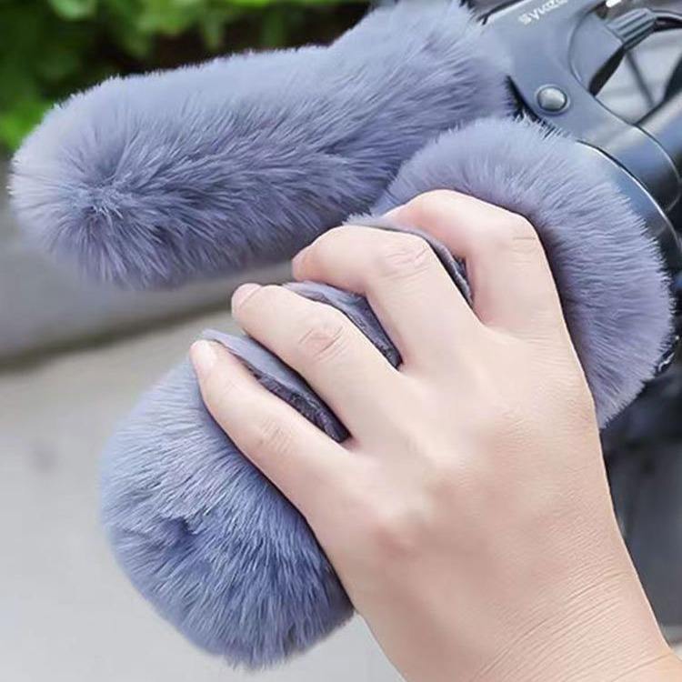 Fundas gruesas para manillar de motocicleta, imitación de piel de conejo, para vehículos eléctricos, diseño cilíndrico cómodo y cálido para invierno