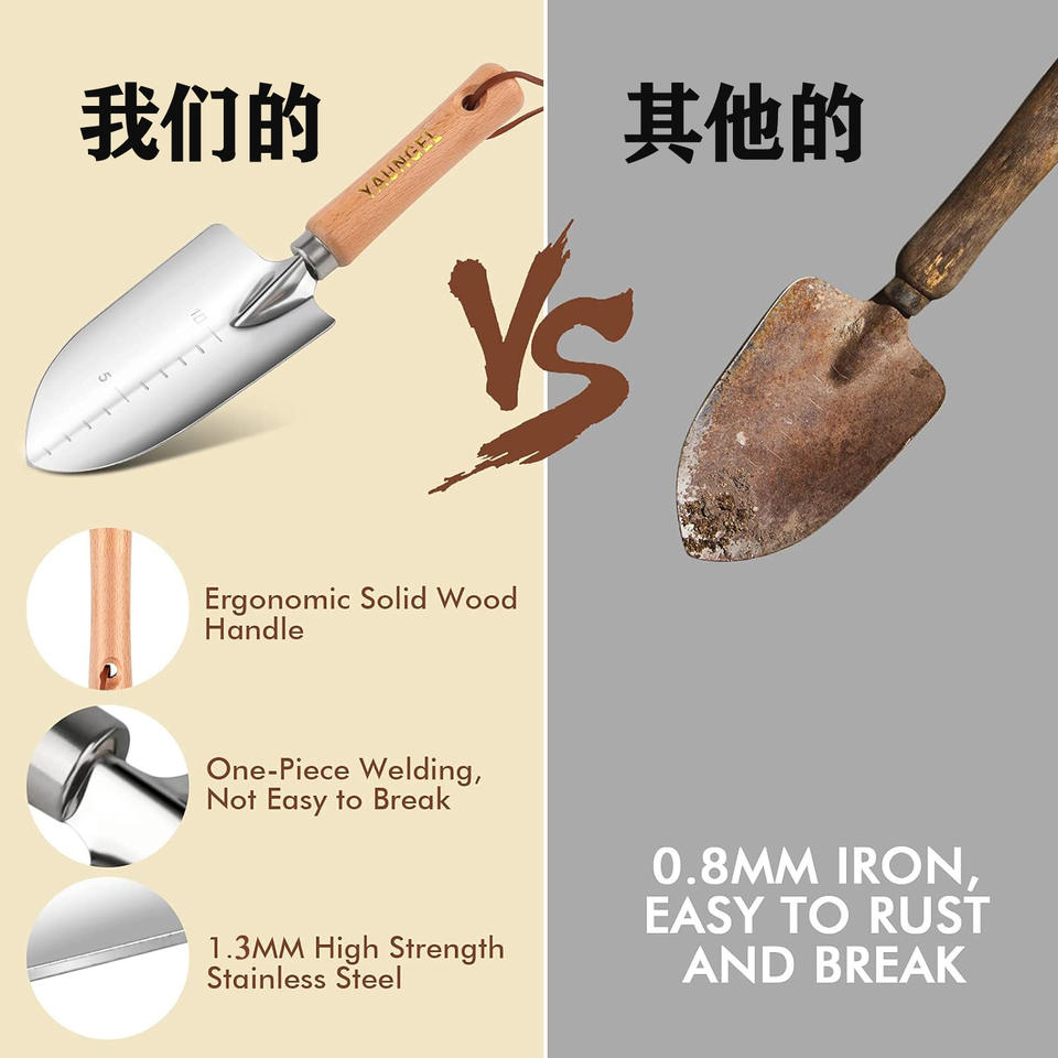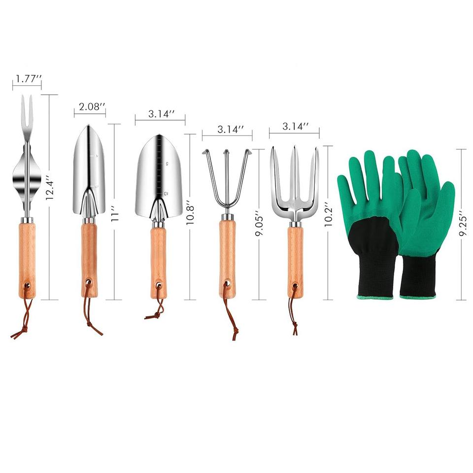 Juego de herramientas de jardín de madera de haya de acero inoxidable grueso, Kit de jardinería de alta calidad para el mantenimiento del patio de poda de plantación al aire libre