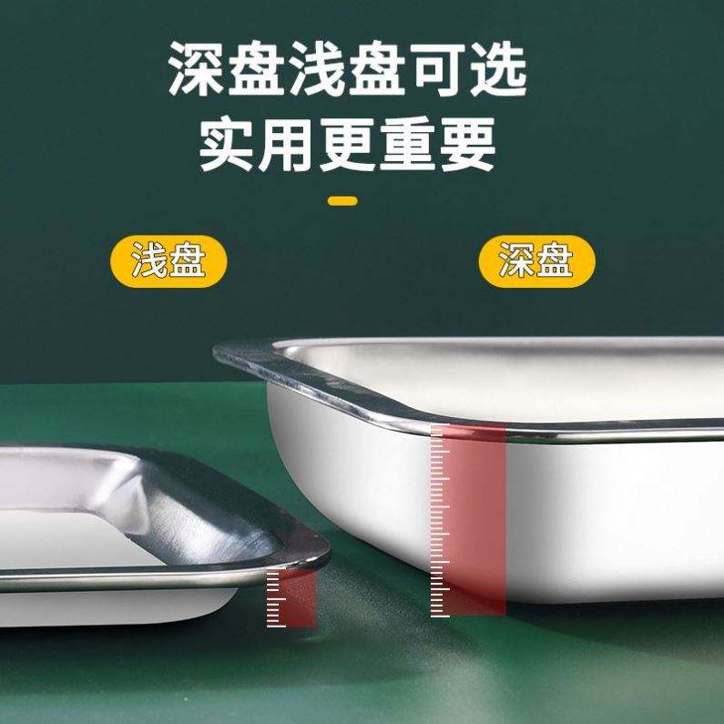 Plato cuadrado de acero inoxidable grueso, plato de arroz al vapor para cantimplora, plato de pescado a la parrilla de gran capacidad, bandeja de celosía de calibre múltiple