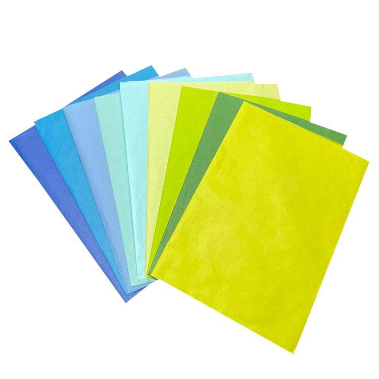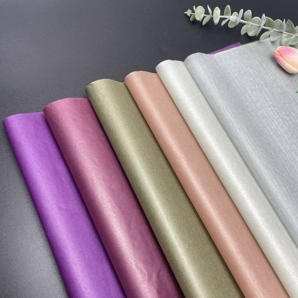 Papel de seda delgado, translúcido y de colores para envolver regalos en capas, decoración de escaparates y forro de ramos florales.