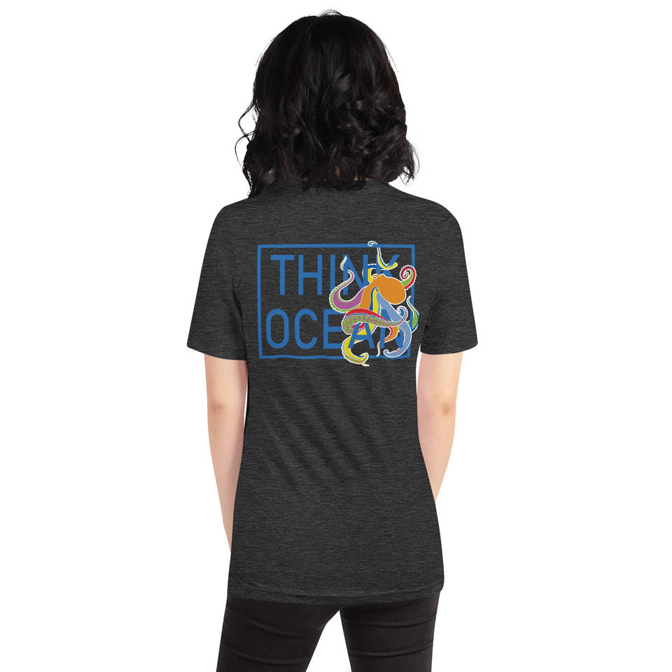 Camiseta de algodón con bordado de fluorescencia de pulpo Think Ocean