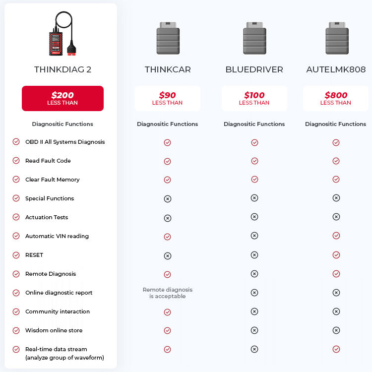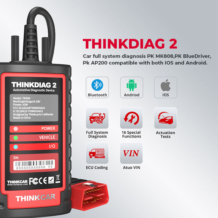 Thinkdiag2 Herramienta de Diagnóstico Bidireccional para Todos los Sistemas, Protocolo CAN-FD, Codificación VIN Automática, Codificación ECU, Más de 15 Funciones de Reinicio, Un Año de Actualización Gratuita