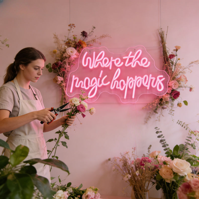 Letrero LED de neón con la frase "This Is Where the Magic Happen", alimentado por USB, regulable, de acrílico, para decoración del hogar, interiores y uso comercial.