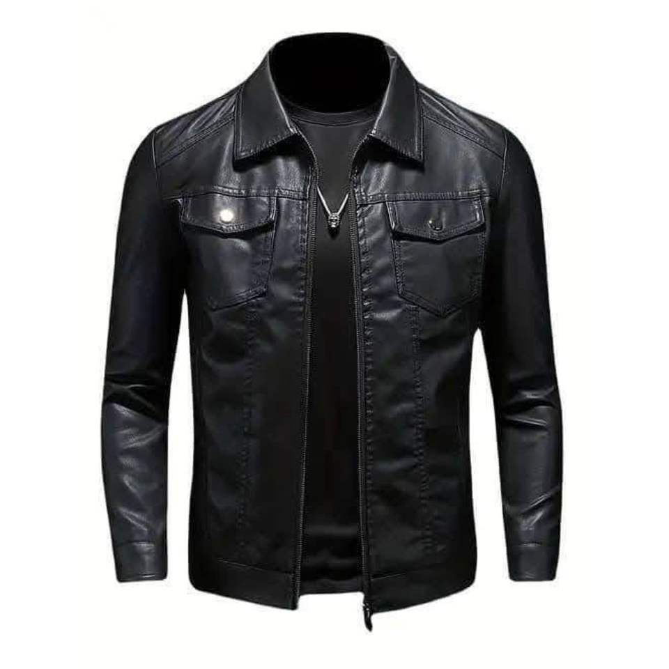 Esta es una chaqueta de motociclista Rindway para hombre, delgada, de cuatro bolsillos, negra, de cuero genuino.