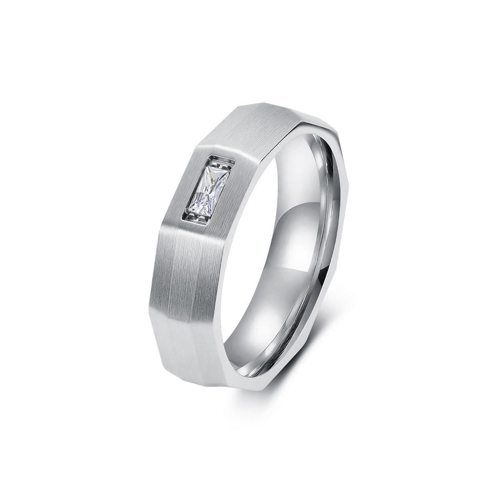 Anillo de Acero de Titanio Thousand Winds K-R1131 con Diseño Geométrico Facetado, Estilo Neutral, Moda Urbana Europea y Americana
