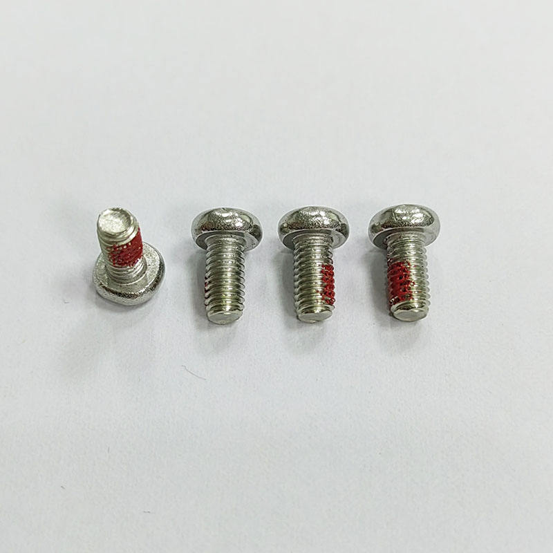 Tornillo de cabeza redonda con parche de nylon rojo