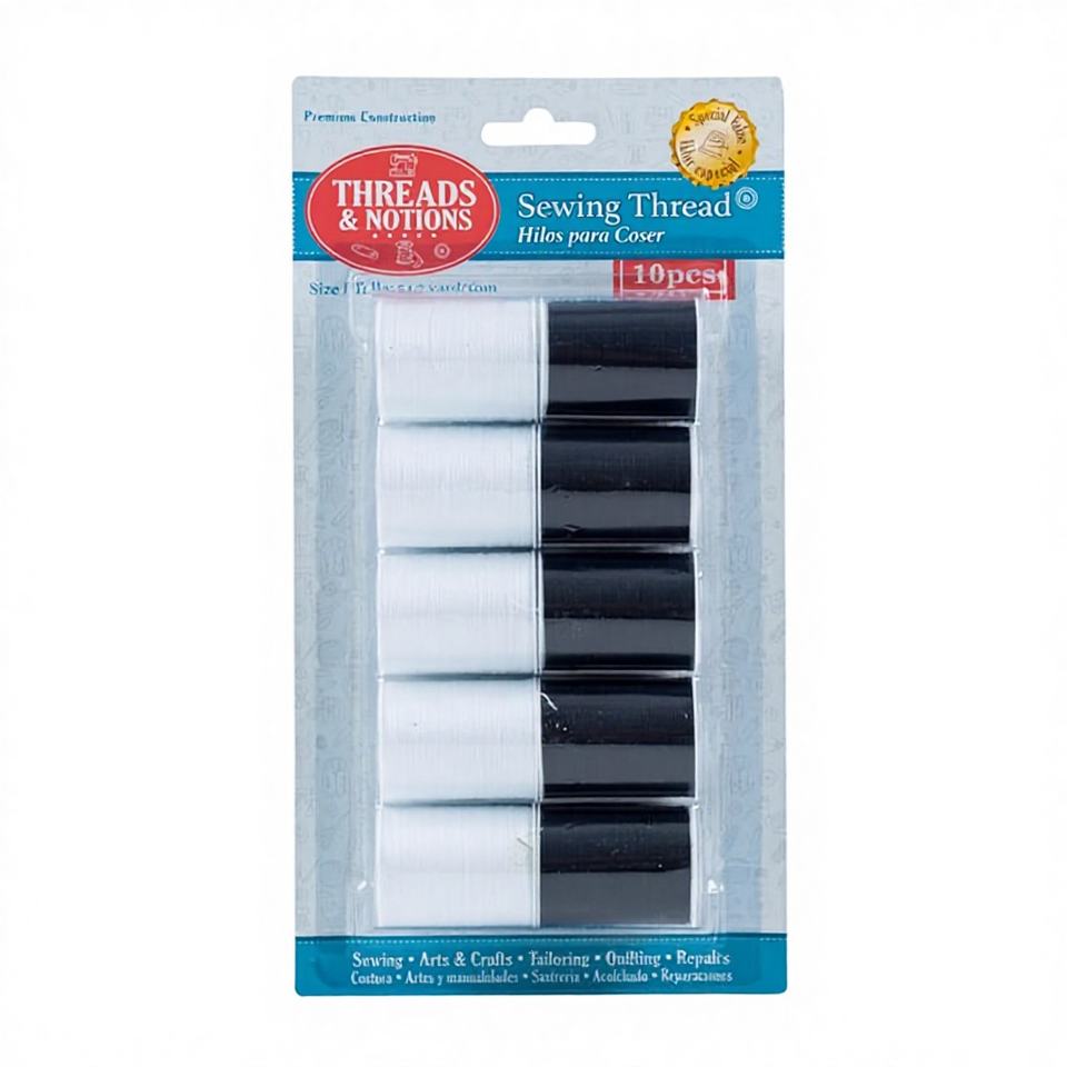 Hilos y Accesorios, Juego de 10 Hilos de Coser, Colección Esencial para Proyectos de Costura, Modelo 78091, Hecho en China