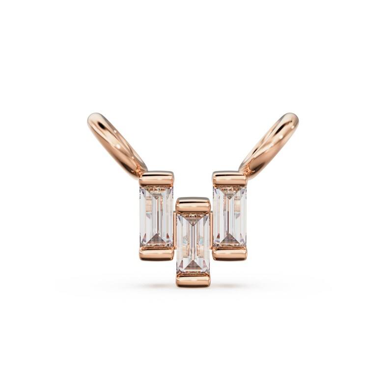 Keyword:Three Baguette Diamond Moissanite 14K Gold Necklace Elegant Pendant