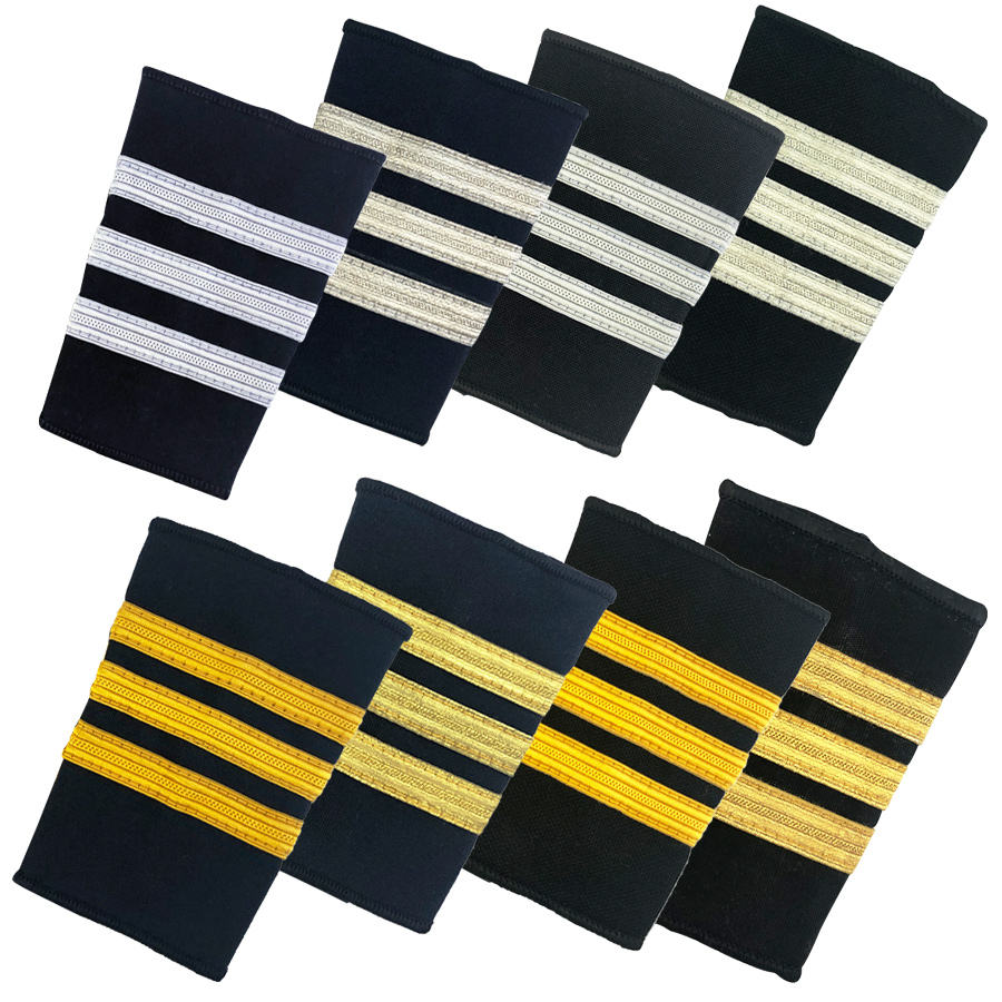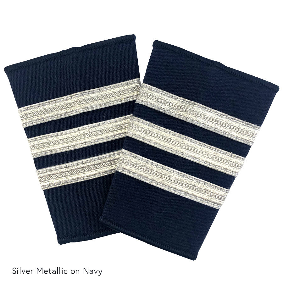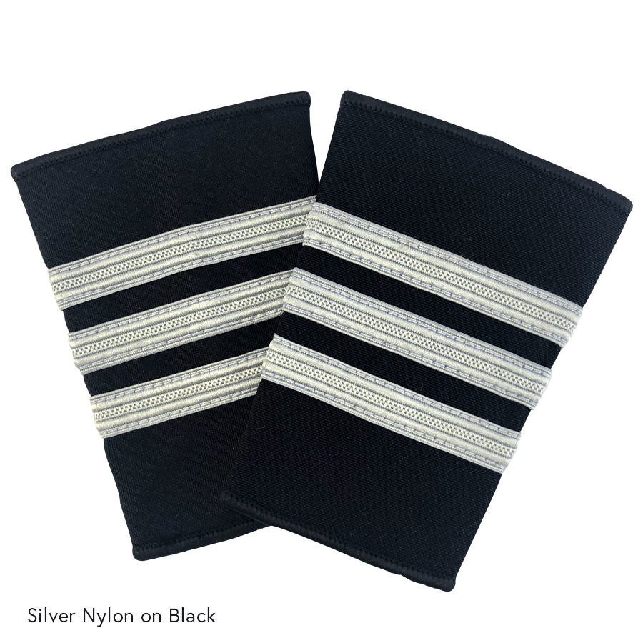 Epaulettes de Piloto de Tres Barras - Primer Grado, 3 Barras Plateadas Metálicas sobre Negro