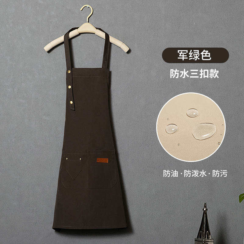 Delantal de lona ajustable impermeable de tres botones, talla única, unisex, para tiendas de mariscos, postres, frutas y pasteles