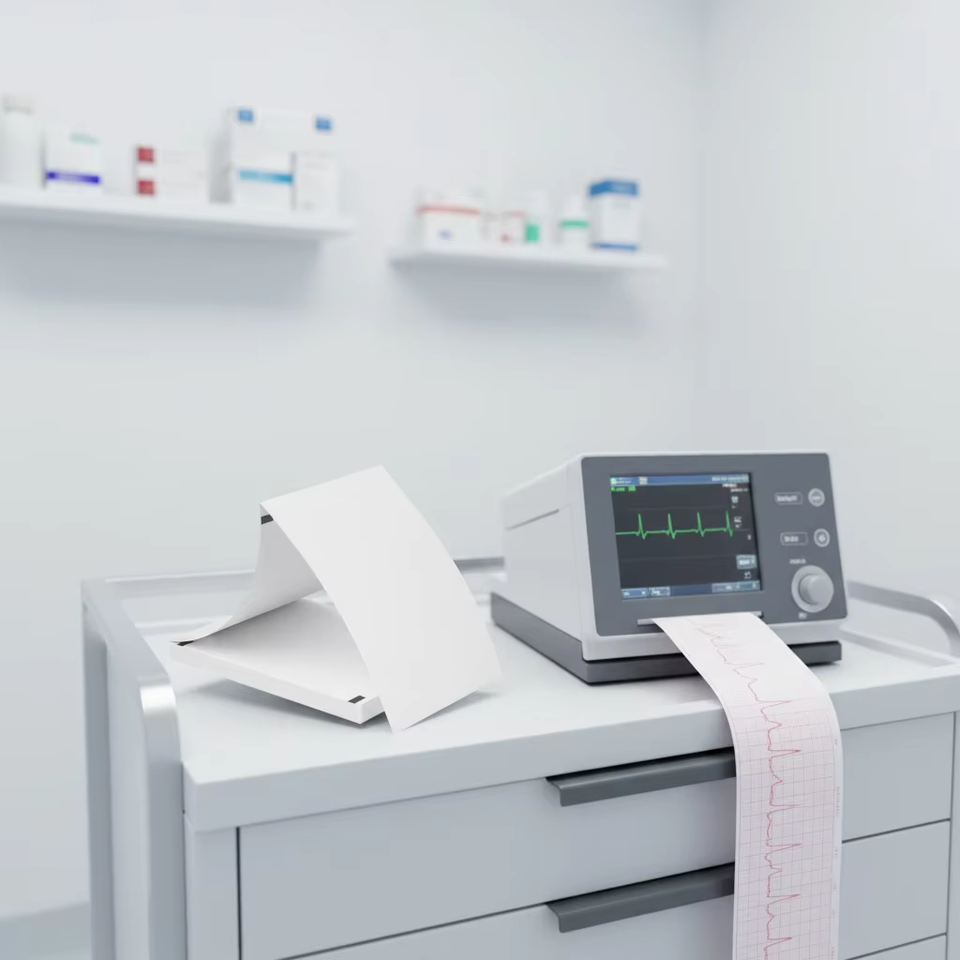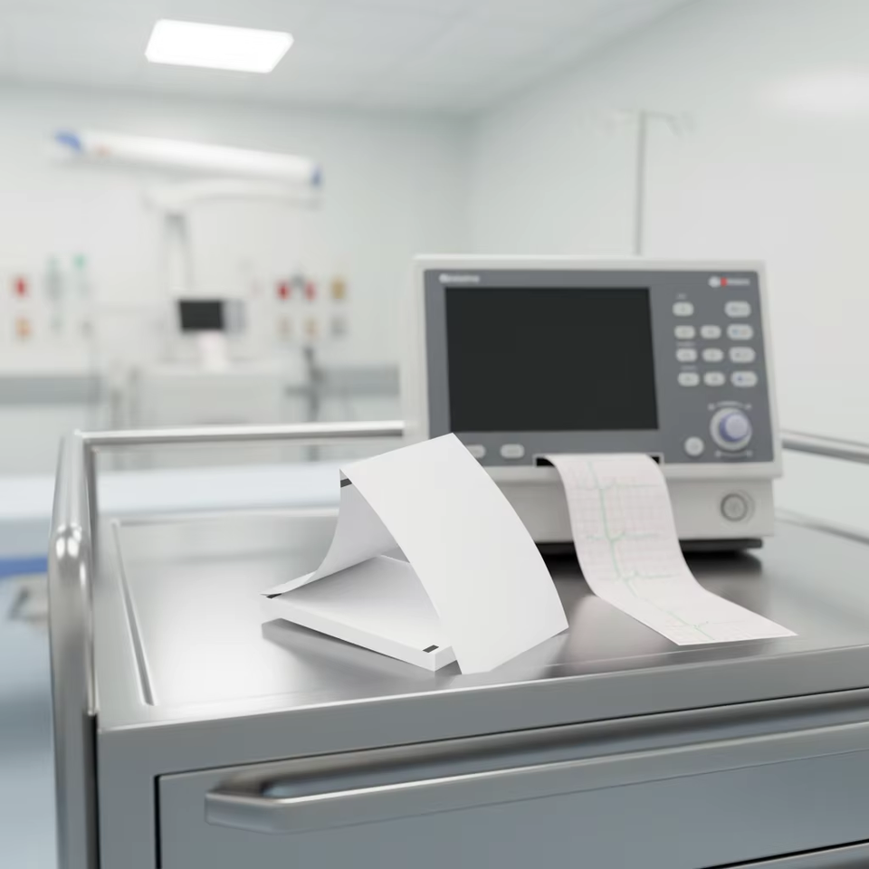 Rollo de Papel para ECG de Tres Canales y Papel Térmico de Una Sola Capa con Plegado en Z de 57 mm x 20 m para NIHON KODEN 6353 EGG 32A