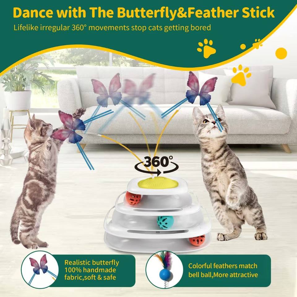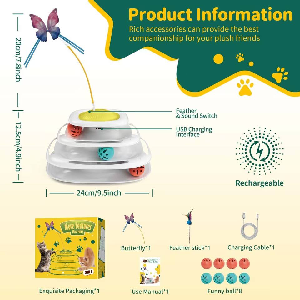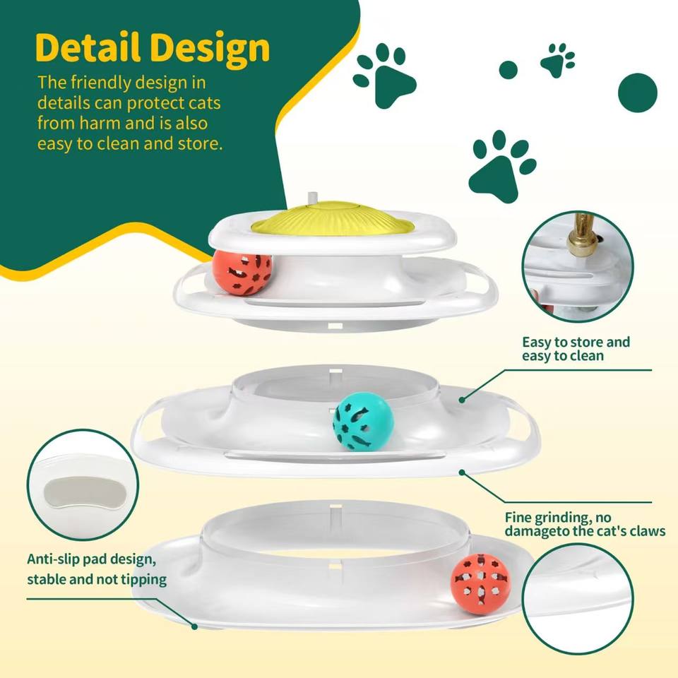 Juguete Interactivo para Gatos con Tres Bolas Coloridas, Juguete de Rompecabezas para Gatitos, Rodillo de 3 Niveles